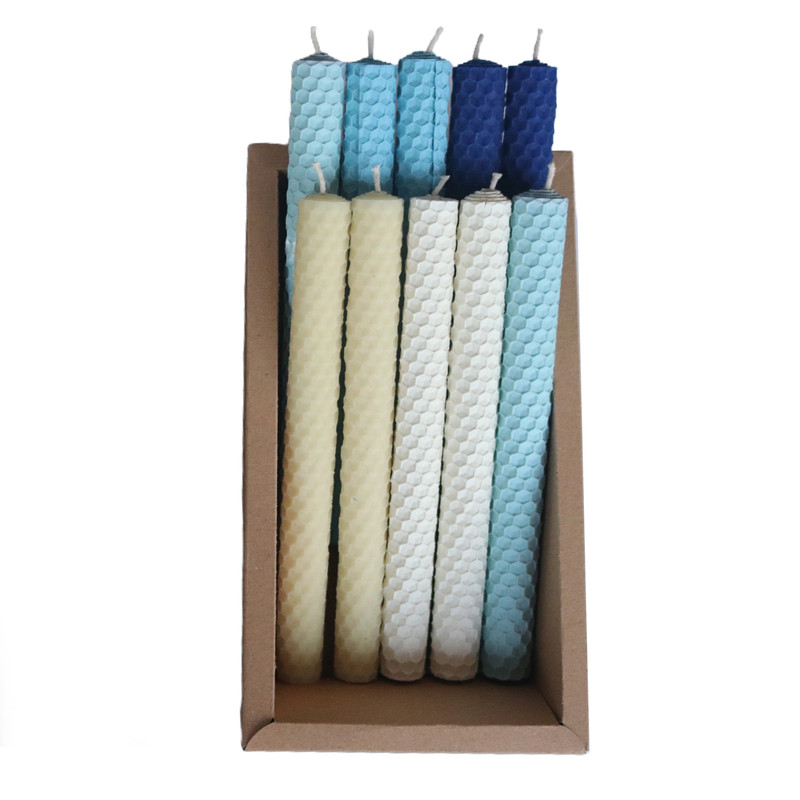 شمع قلمی موم عسلی زویی، در رنگ های متنوع، معطر و خوشبو. این شمع ها از بهترین مواد موجود در بازار تهیه شده و در بسته های 10 عددی از جنس کرافت و طلق ارائه می شوند. شمع های قلمی موم عسلی زویی، براق و بسیار با کیفیت اند و با زمان سوخت شان طولانی است.